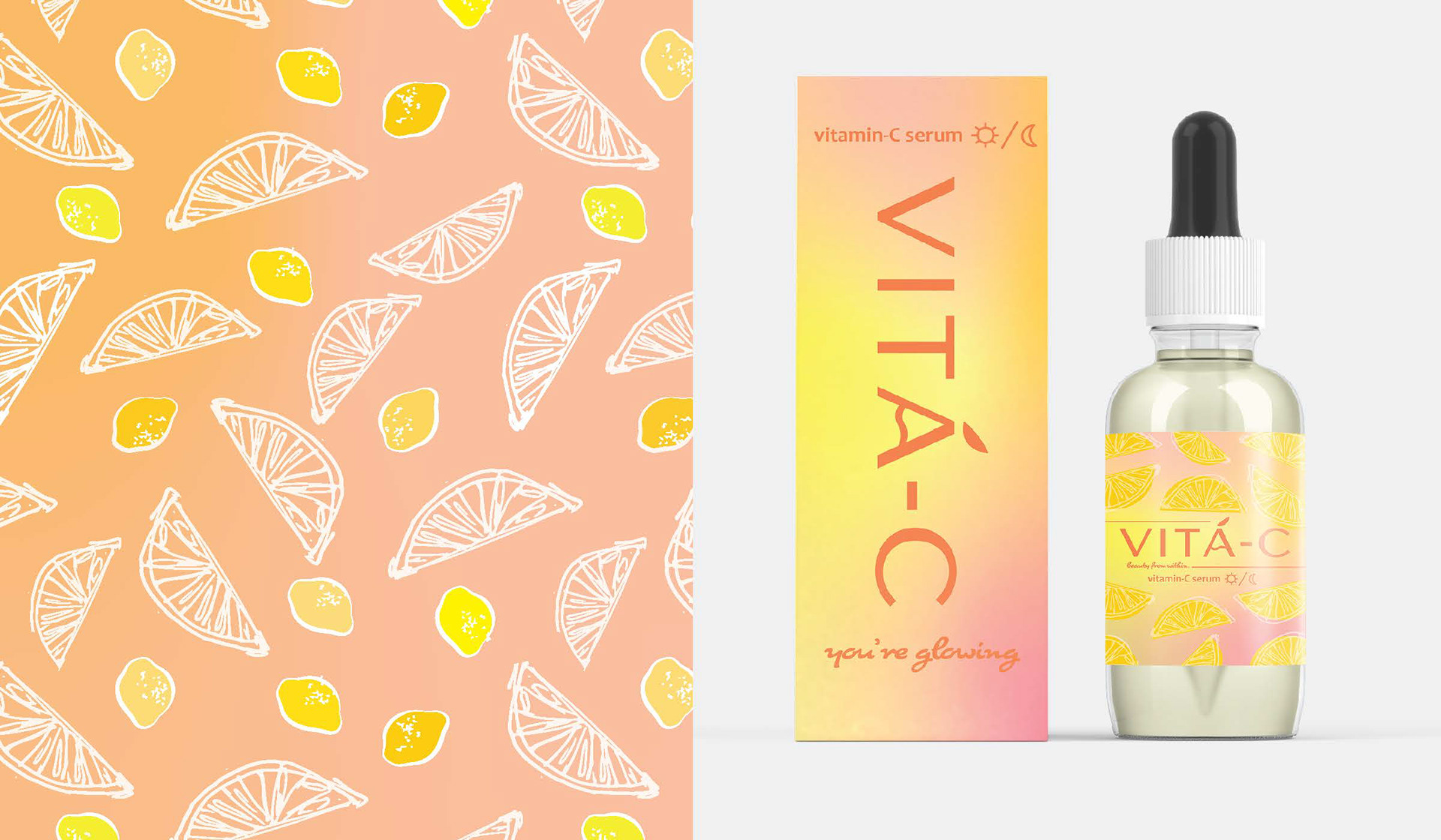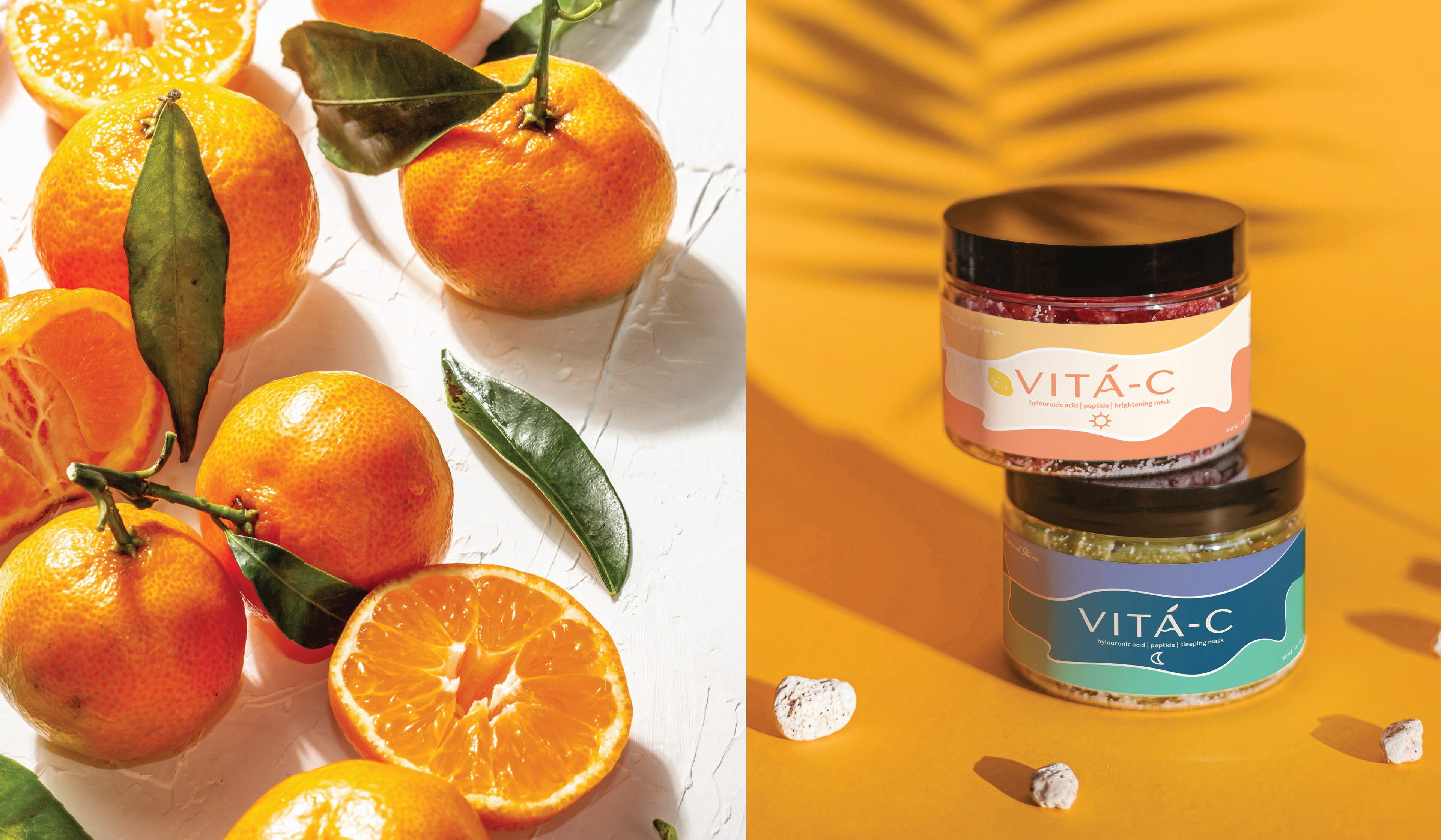 I designed a visual system utilizing custom, hand-drawn illustrations and a fresh, sun-drenched color palette to emphasize the purity and efficacy of plant-based components, particularly the brand's flagship Vitamin C serum line. This approach—from the lively logo to the custom packaging and marketing collateral—successfully positioned VITA-C as a dynamic, transparent, and trusted source for effective natural skincare.